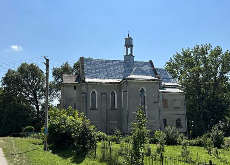 Костел вівтар 253°, до головної вулиці А3, в центрі села. Спостереження М.І.Жарких, 11 серпня 1997 р.