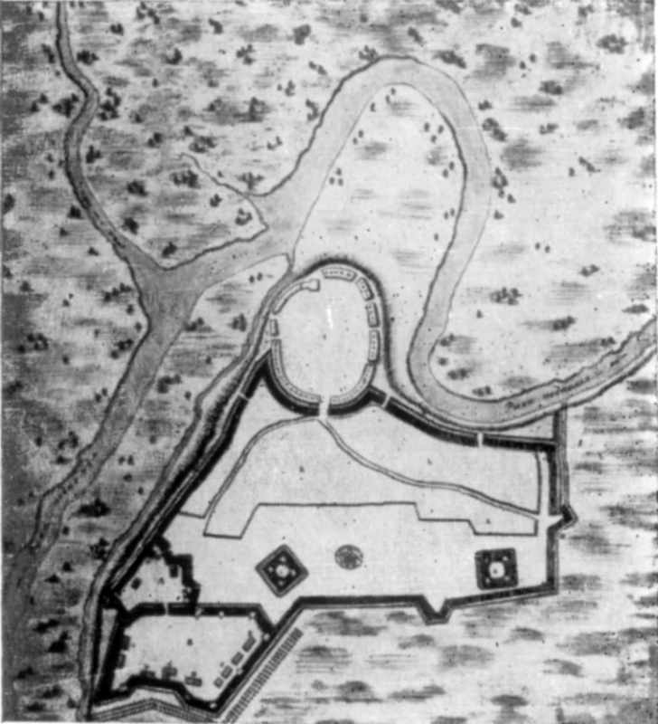 Сечь никогда не была обычным городом с разветвленной сетью улиц и площадей. Запорожцы жили в куренях – длинных деревянно-земляных сооружениях. [Подобного рода курени и церковь изображены в нижнем левом углу плана Запорожской Сечи 1774 г. Эти здания вряд ли показаны с документальной точностью. Особое сомнение вызывает церковь, которая выглядит на этом рисунке необычной для украинской архитектуры (ЦГВИА, ф. ВУА, д. 21763, план крепости Запорожской Сечи, 1774 г. Планы Запорожской Сечи 1742 и 1774 гг. ЦГВИА, ф. ВУА, д. 21963-1, 21963-III). План 1742 г. подписан инж. Де Боскетом, известным по строительству в Киеве. Эти планы составлены офицерами русской армии в годы, когда осуществлялся контроль над Сечью.]