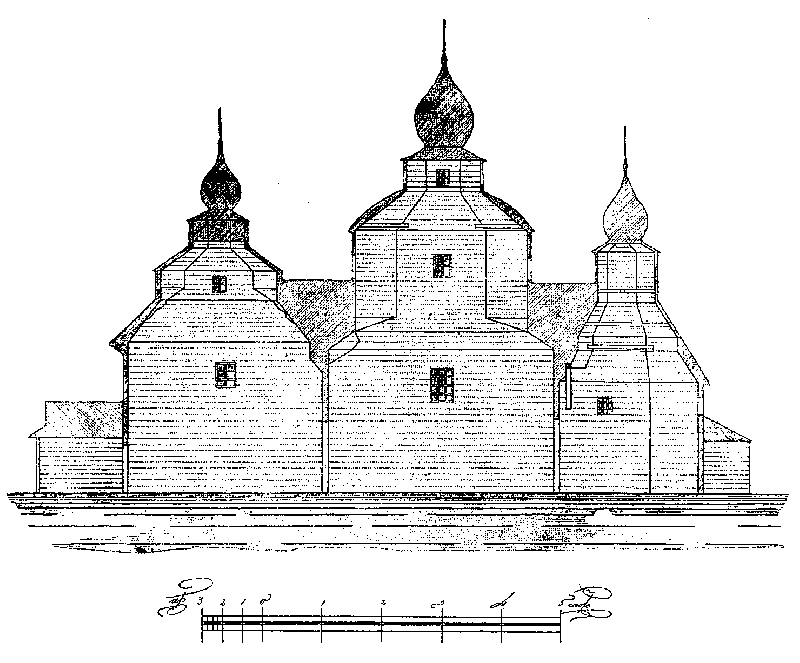 Рис. 70. Разрез Преображенской церкви в м. Полонном Розмір зображення: 800:663 піксел Попередня сторінка | Вище | Наступна сторінка