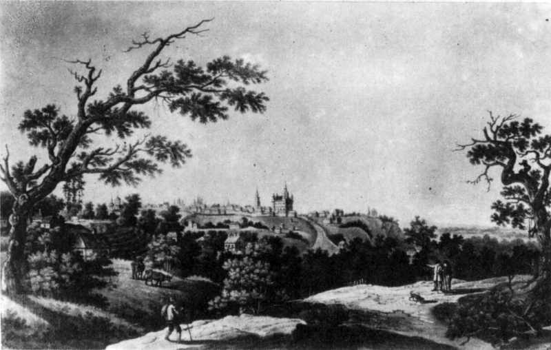 Вид Полтави з Кочубеївського саду. Гравюра на металі Т. Стадлера з акварелі О. Кунавіна. Початок XIX ст.