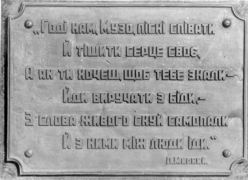 Фото меморіальної дошки на пам’ятнику П. Мирному Розмір зображення: 800:582 піксел Попередня сторінка | Вище | Наступна сторінка