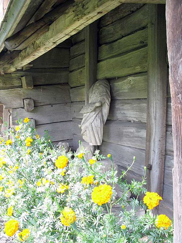 Розбитий надгробок при стіні церквиРозмір зображення: 600:800 піксел Фото Зенона Боровця і Богдана Тхора, 5 вересня 2006 р. |