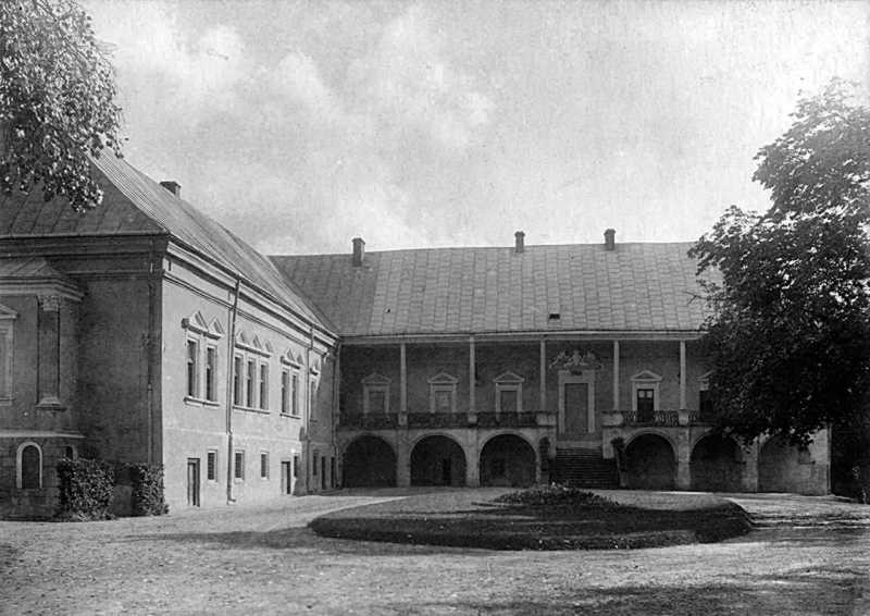 1925 р. Загальний вигляд з боку двораРозмір зображення: 800:566 піксел Фото 1925 р. зі статті Тетяни Яцечко-Блаженко «10 фактів про Поморянський замок» (13.10.2017 р.) |