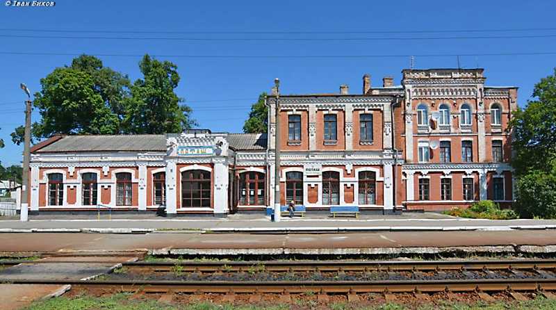 Залізнична станція» Поташ» в селі Поташ Маньківського району Черкаської області. Відкрита у 1891 році. Неочікувано величний комплекс станції ХІХ століття. Головна будівля складається з трьох об’ємів – одно-, дво- та триповерхового. Тут, окрім залів очікування та кас, розташовані квартири залізничників, адміністративні приміщення та готель. Тут досі три поверхи житлових квартир ! Крім того території станції збереглася автентична цегляна водонапірна вежа ( з нівелірними знаками на стінах) та два пакгаузи… Рідкісний за розмірами та ступенем збереженості залізничний комплекс.
