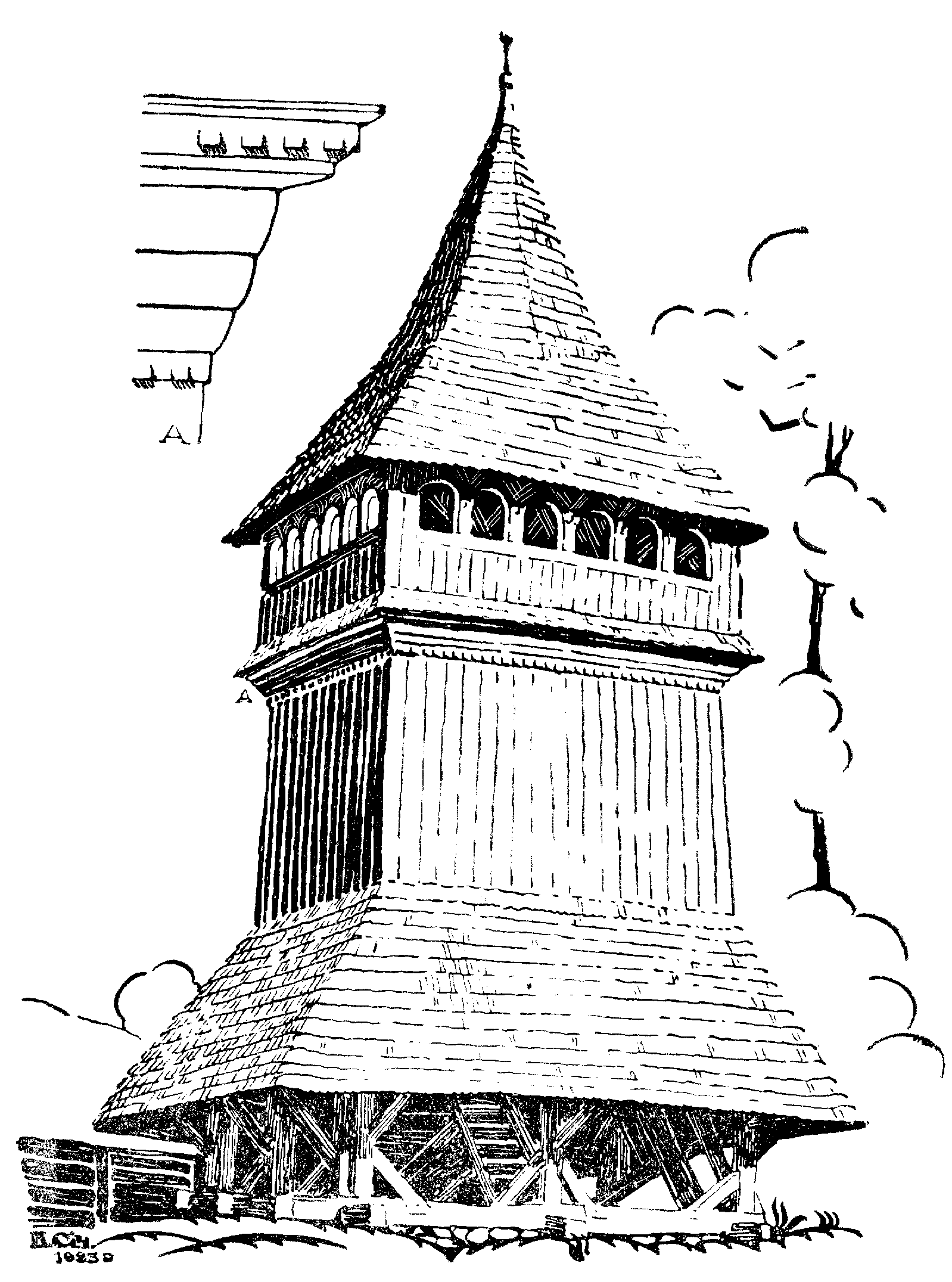 Джерело: Січинський В. Деревяні дзвіниці і церкви Галицької України XVI – XIX ст. – Льв.: 1925 р., № 2.