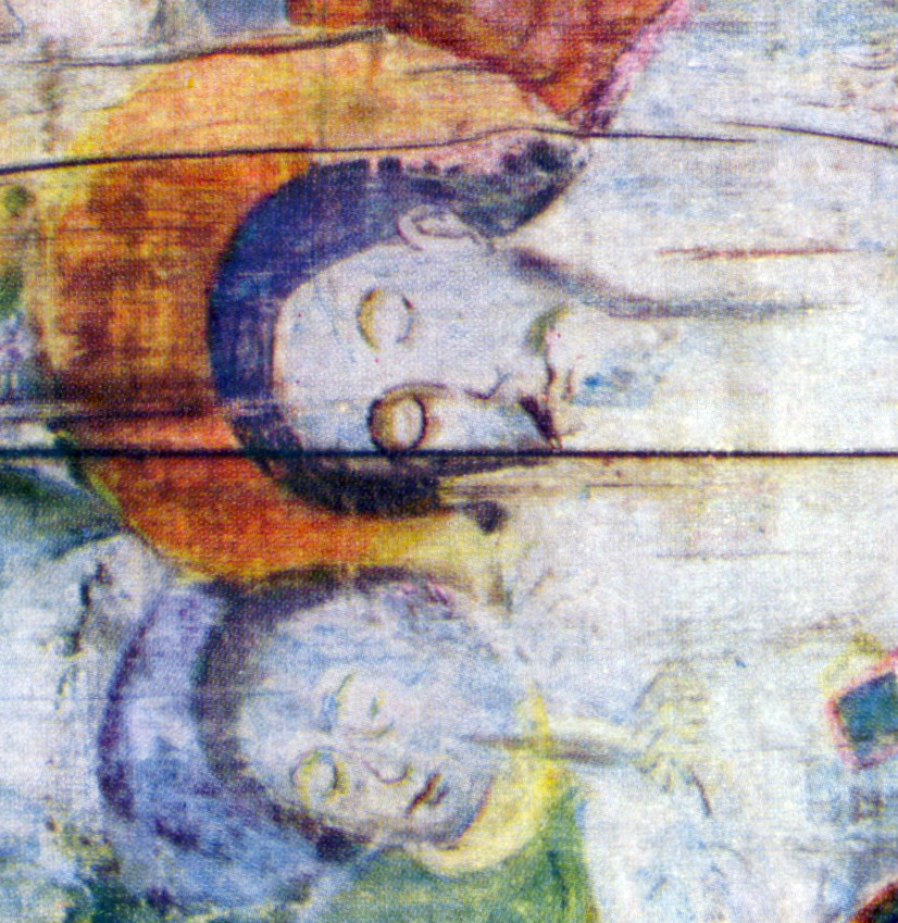 Голова ІсусаЛюдмила Міляєва Розмір зображення: 826:849 піксел Джерело: Міляєва Л.С. Стінопис Потелича. – К.: Наукова думка, 1969 р., с. 98. |