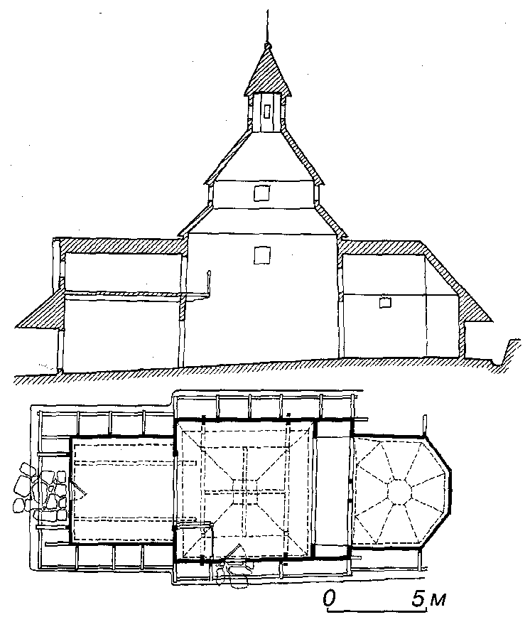 Поздовжній переріз (реконструкція) і план. За П.Юрченком Розмір зображення: 746:875 піксел Попередня сторінка | Вище | Наступна сторінка