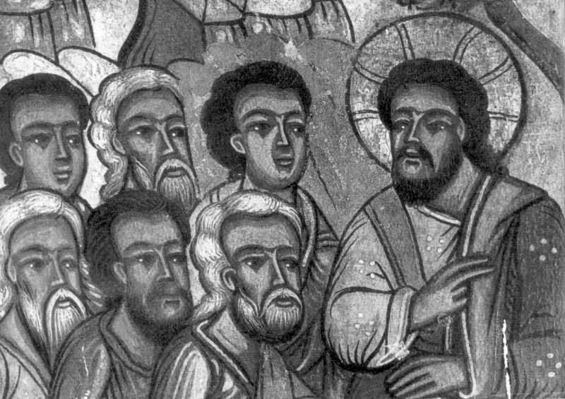 Апостоли та ІсусЛюдмила Міляєва Розмір зображення: 800:565 піксел Джерело: Міляєва Л.С. Стінопис Потелича. – К.: Наукова думка, 1969 р., с. 116. |