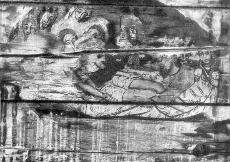 Покладання в трунуЛюдмила Міляєва Розмір зображення: 800:562 піксел Джерело: Міляєва Л.С. Стінопис Потелича. – К.: Наукова думка, 1969 р., с. 160. |