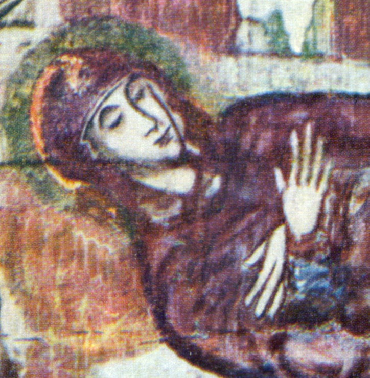 Півпостать МаріїЛюдмила Міляєва Розмір зображення: 724:741 піксел Джерело: Міляєва Л.С. Стінопис Потелича. – К.: Наукова думка, 1969 р., с. 169. |