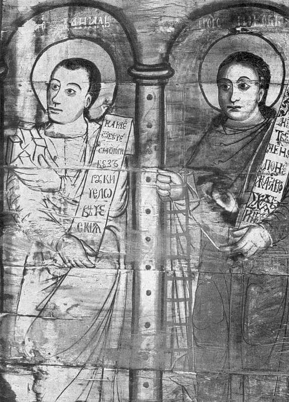 Пророки Даниїл і ЯківЛюдмила Міляєва Розмір зображення: 576:800 піксел Джерело: Міляєва Л.С. Стінопис Потелича. – К.: Наукова думка, 1969 р., с. 197. |