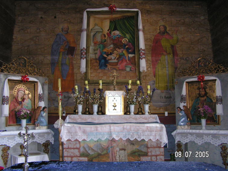 Головний вівтар Розмір зображення: 756:567 піксел Drewniana kaplica w Prusiu. Ołtarz główny w kaplicy. Джерело: Попередня сторінка | Вище | Наступна сторінка