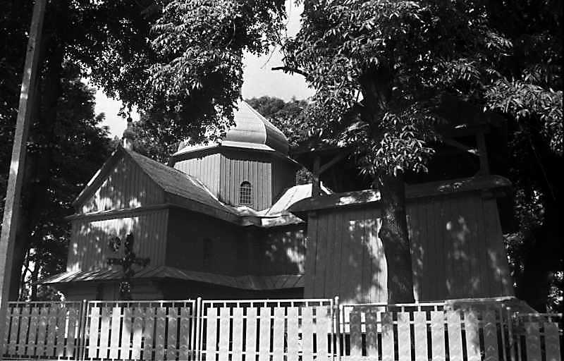 1989 р. Церква і дзвіниця. Вигляд з південного заходуРозмір зображення: 800:512 піксел 1989 р. 7 липня. Фото М.І.Жарких. Негатека, № 530-12. |