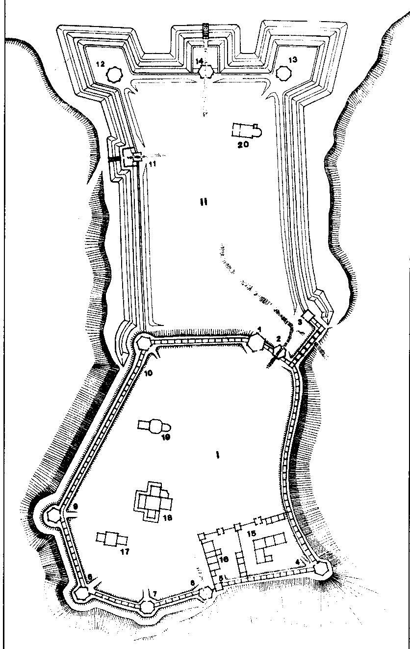 11 – 14 – башти, равеліни і бастіони Нового земляного города;