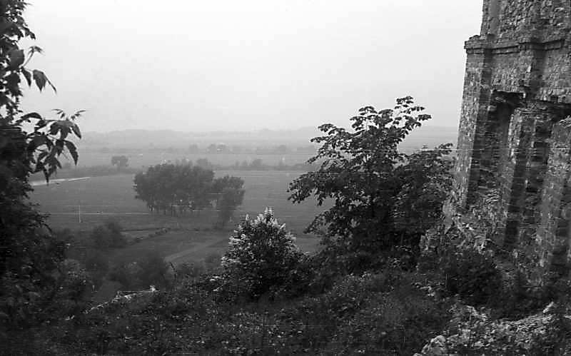 1976 р. Фрагмент муру з видом на долину СеймаРозмір зображення: 800:499 піксел 1976 р. 2 червня. Фото М.І.Жарких. Негатека, № A129-10. |