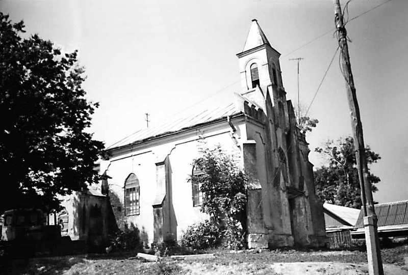 КостелРозмір зображення: 800:541 піксел Кстел розташовано в центрі села на головній вулиці, поруч з церквою. Вівтарем він орієнтований на захід. Спостереження М.І.Жарких, 18.08.1989 р. |