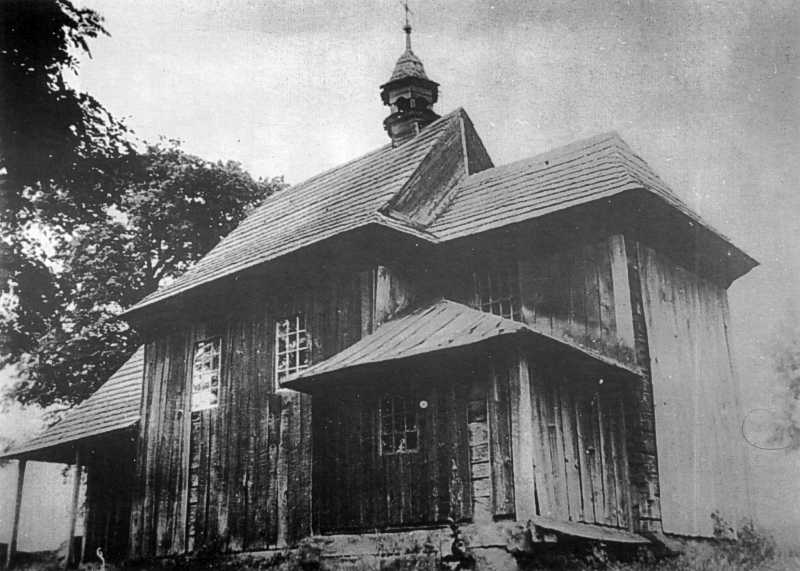 Радохонці. Церква св. Миколи, 1718 р. Занепала у 1940-х рр. Світлина 1930-х рр. Державний архів Львівської області ф. 1, оп. 29, сп. 2197.