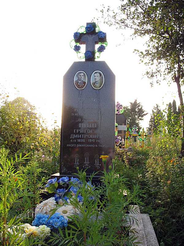 Пам’ятник Г. ЦиціРозмір зображення: 600:800 піксел Фото Зенона Боровця, 7 вересня 2006 р. Верхній напис на читається, нижній: «В пам’ять Цмці Григорію Дмитровичу 5.04.1896 – 26.06 (?) .1941, якого закатовано в тюрмі». |
