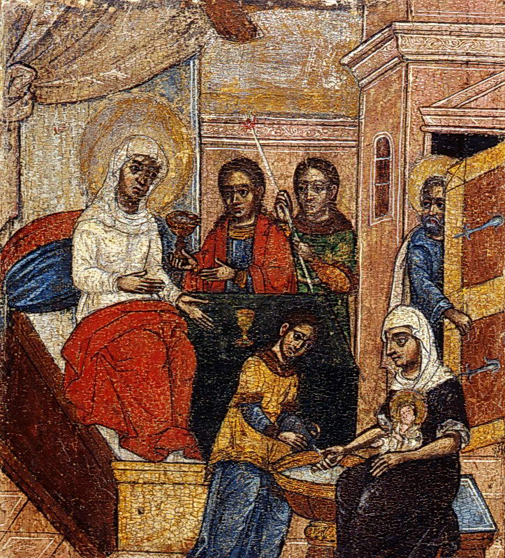 Різдво богородиціРозмір зображення: 723:800 піксел Різдво богородиці. Ікона сер. 17 ст. 35: 32 см. З церкви св.Іоана Богослова у Рокшицях. Нині в музеї-замку Ланцуті. |