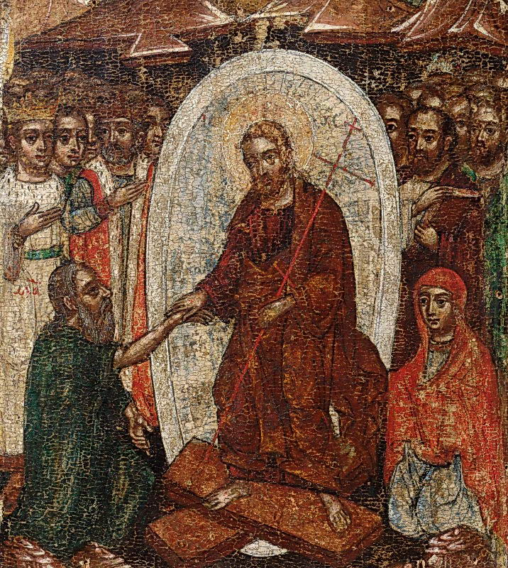 Зішестя до пеклаРозмір зображення: 716:800 піксел Зішестя до пекла. Ікона сер. 17 ст. 34: 31 см. З церкви св.Іоана Богослова у Рокшицях. Нині в музеї-замку Ланцуті. |