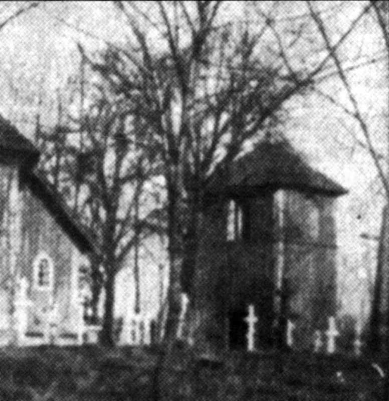Дзвіниця церкви св. Івана Золотоустого. Фото за: Церковний календар. - Варшава, 1969. - С. 93.Розмір зображення: 776:800 піксел Джерело: Слободян В. Церкви Холмської єпархії. – Львів: Наукове товариство ім. Шевченка, 2005 р., с. 351. |
