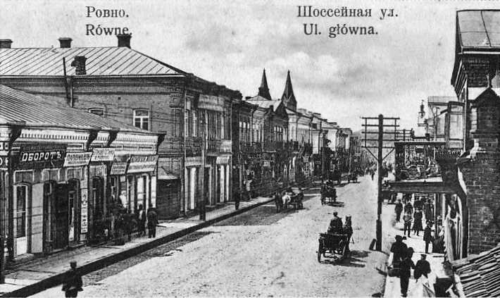 Поч. 20 ст. (?) Перспектива шосейної вулиціРозмір зображення: 710:423 піксел Російська поштівка поч. 20 ст. (підпис російською та польською мовами) з альбому «Дубенський форт-застава» Видно шпилі костелу св. Антонія. |