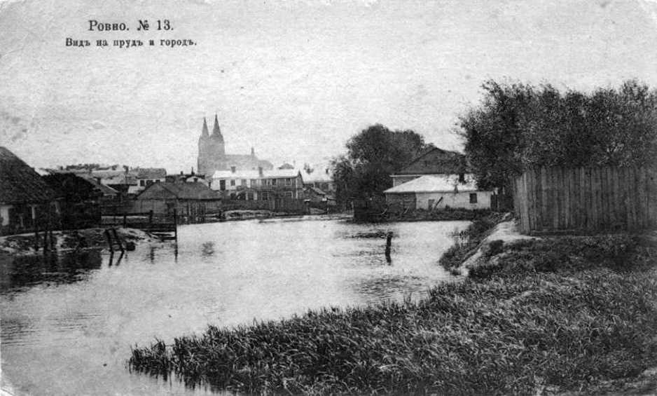 Поч. 20 ст. (?) Панорама ставу з костелом св. АнтоніяРозмір зображення: 938:565 піксел Російська поштівка поч. 20 ст. з альбому «Дубенський форт-застава» |