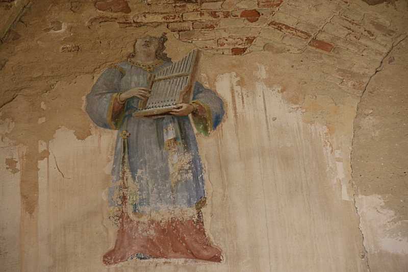 Фрагмент стінопису (постать із гуслями)Розмір зображення: 800:533 піксел Фото Зенона Боровця і Богдана Тхора, 3 серпня 2017 р. |