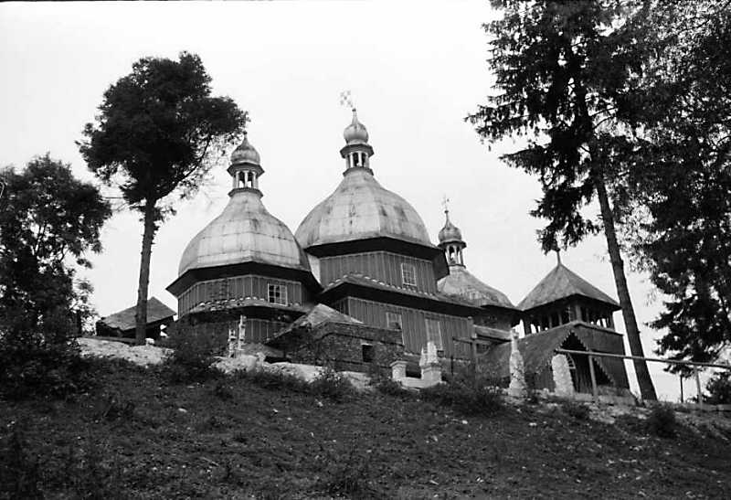 1990 р. Церква і дзвіниця. Вигляд з північного сходуРозмір зображення: 800:547 піксел 1990 р. 11 серпня. Фото М.І.Жарких. Негатека, № 645-05. |