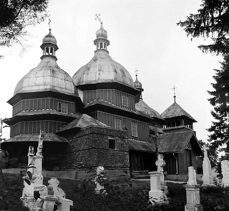 1990 р. Церква і дзвіниця. Вигляд з північного сходуРозмір зображення: 800:736 піксел 1990 р. 11 серпня. Фото М.І.Жарких. Негатека, № 645-09+10. |
