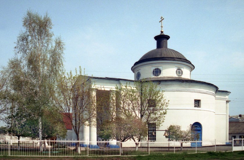 Храм построен в 1805 г. на средства полковника Михаила Матвеевича Куликовского. Внешне храм круглый, с двумя выступающими портиками со сторона паперти и алтаря. Сверху покрыт куполом иа барабане с прорез- ными круглнми окнами.
