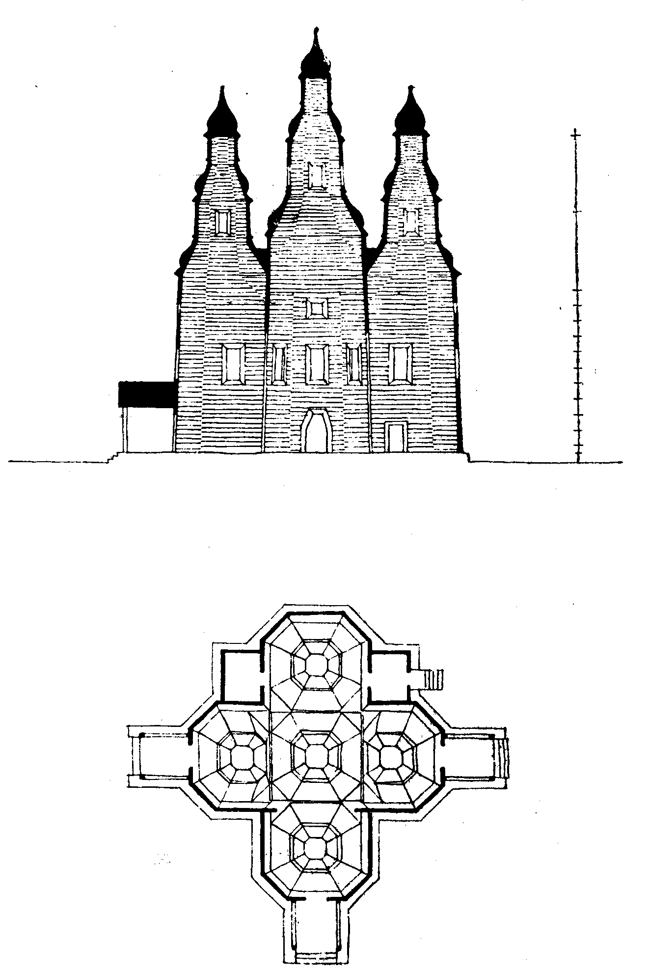 План і переізРозмір зображення: 1322:1981 піксел Джерело: Юрченко П.Г. Дерев’яне зодчество України. – К.: 1949 р., с. 104. |