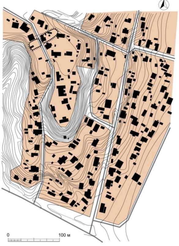 План городища «Замок»Розмір зображення: 585:805 піксел План городища «Замок» в Ромнах Роменської культури, давньоруського часу, козацької доби. Із книги: Осадчий Є. М. Літописні міста Південної Сіверщини. – Харків: 2023 р., с. 197. |