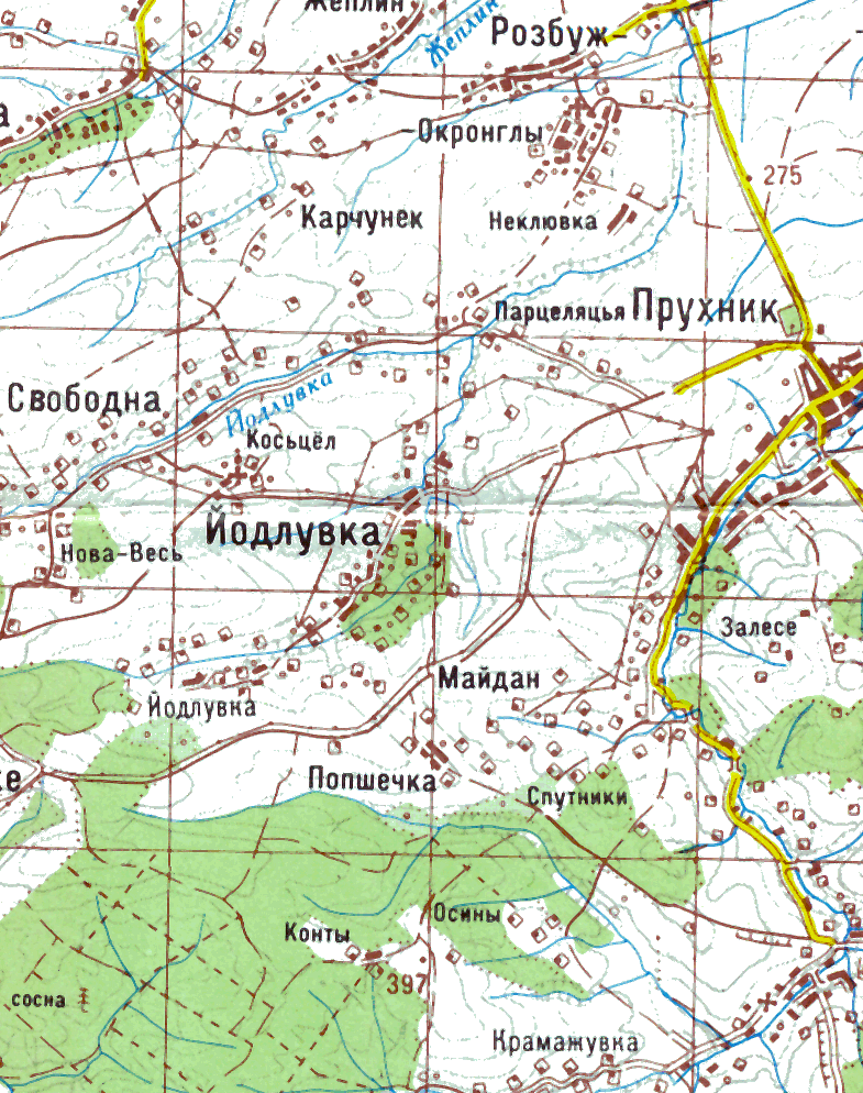 Карта (Розбуж Окронгли)Розмір зображення: 785:994 піксел Карта Київської військово-картографічної фабрики, масштаб 1:100000, аркуш 88, друк 2000 р. (за матеріалами 2000 р.). |