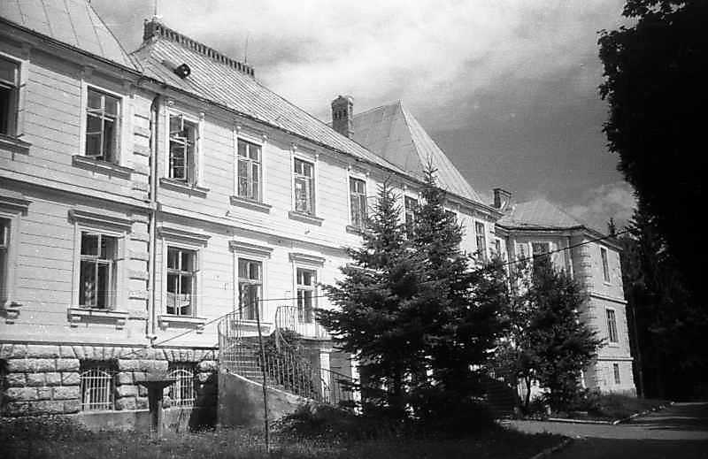 1997 р. Південний фасад центрального і східного корпусів. Вигляд з південного заходуРозмір зображення: 800:519 піксел 1997 р. 18 серпня. Фото М.І.Жарких. Негатека, № 925-06. |