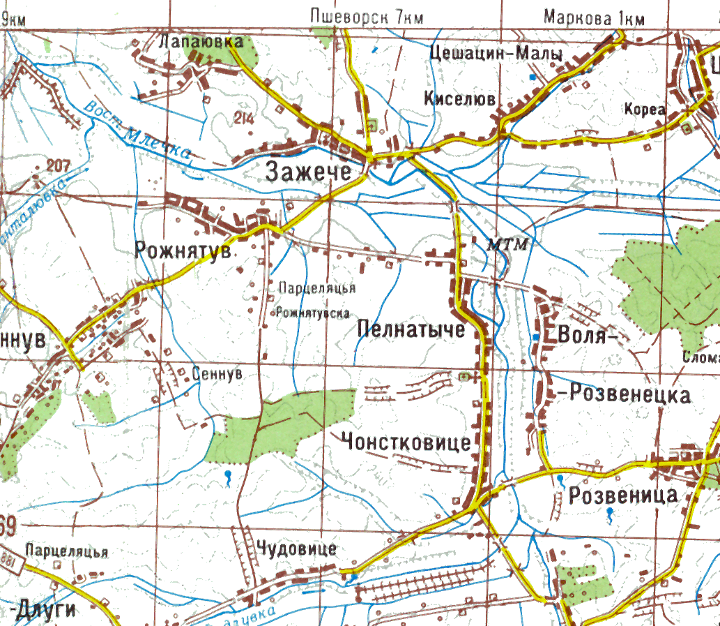 Карта (Рожнятув)Розмір зображення: 1033:897 піксел Карта Київської військово-картографічної фабрики, масштаб 1:100000, аркуш 88, друк 2000 р. (за матеріалами 2000 р.). |