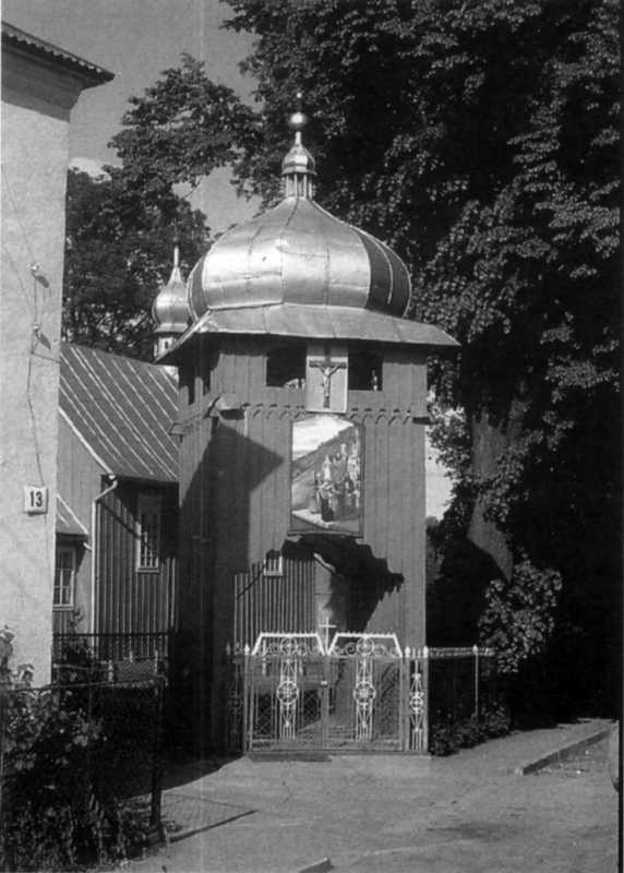 1992 р. Загальний вигляд дзвіниціРозмір зображення: 572:800 піксел Світлина І. Синкальського 1992 р. Джерело: Слободян В. Церкви України: Перемиська єпархія. – Льв.: 1998 р., с. 507. |
