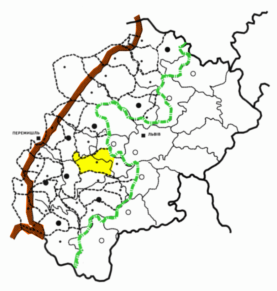 Деканат на карті Перемиської єпархіїРозмір зображення: 884:927 піксел Рудецький деканат На 1938 p. була 21 парафіяльна і 22 філійні церкви. Джерело: Слободян В. Церкви України: Перемиська єпархія. – Льв.: 1998 р., с. 479. |
