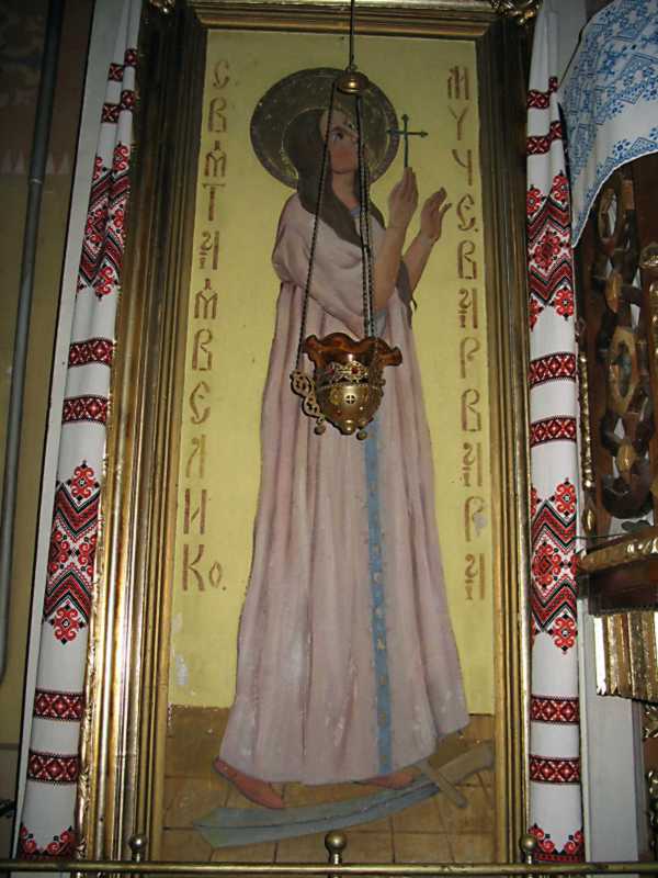 Ікона «Св. Варвара» Розмір зображення: 600:800 піксел Фото Зенона Боровця, 18 липня 2007 р. Вкладені елементи Півпостать св. Варвари