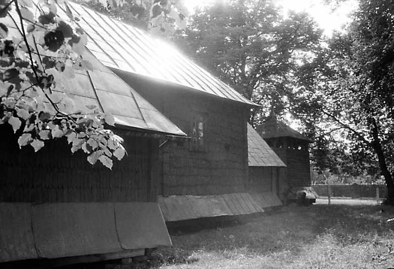 1990 р. Церква і дзвіниця. Вигляд з позиції А1Розмір зображення: 800:545 піксел 1990 р. 15 серпня. Фото М.І.Жарких. Негатека, № 661-35. |