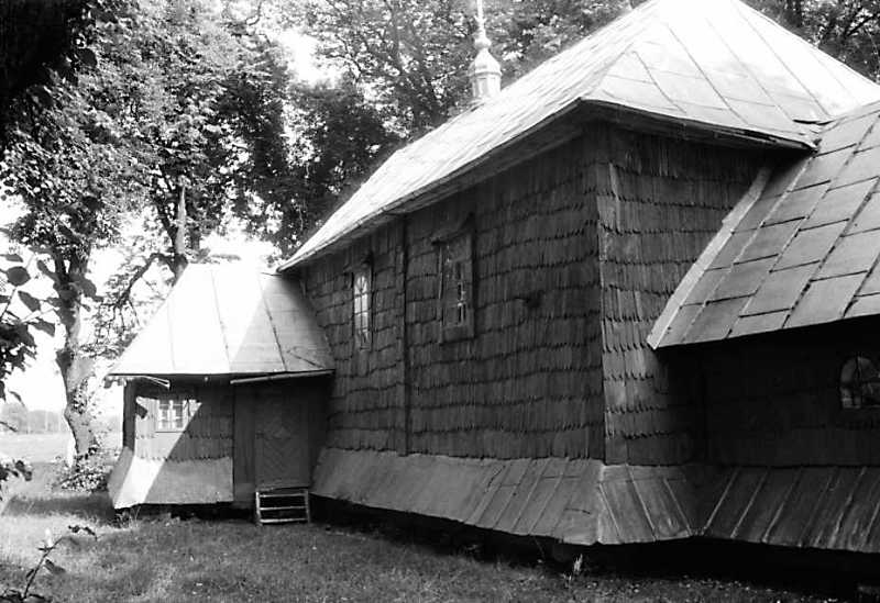 1990 р. Бічний фасад. Вигляд з позиції А4Розмір зображення: 800:549 піксел 1990 р. 15 серпня. Фото М.І.Жарких. Негатека, № 661-37. |