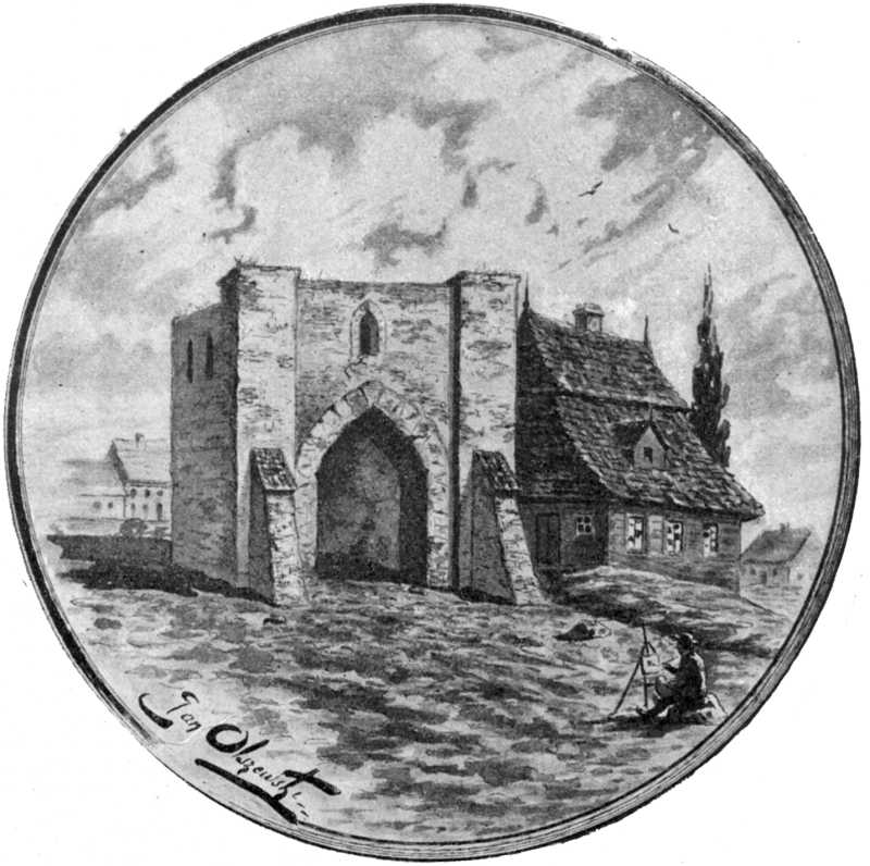 Брама з часів хрестоносцівРозмір зображення: 800:796 піксел Джерело: Sokołowski A. Dzieje Polski ilustrowane. – Warszawa, 1900, t. 2, s. 22. |