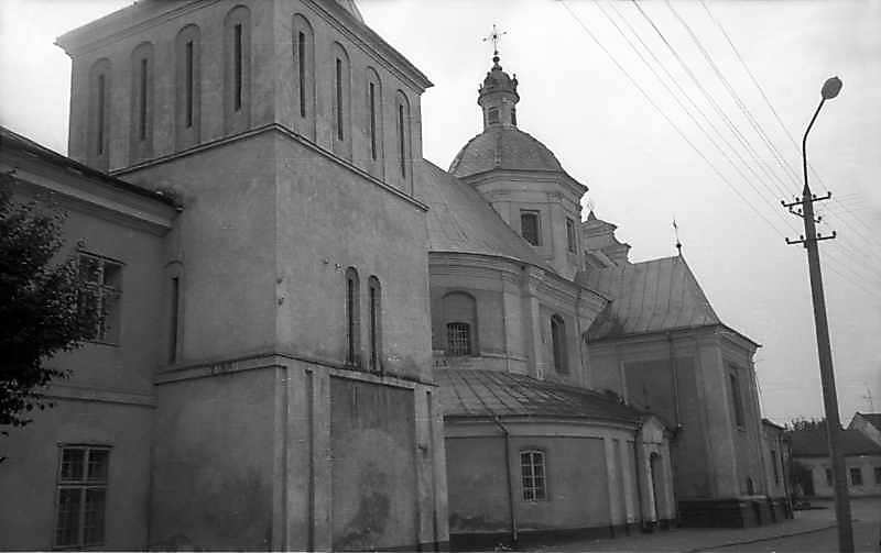 1977 р. Дзвіниця бернардинів і церква. Вигляд з позиції А1Розмір зображення: 800:503 піксел 1977 р. 20 липня. Фото М.І.Жарких. Негатека, № A328-21. |