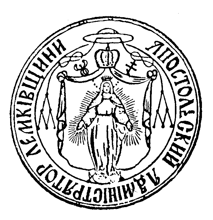 Печатка апостольської адміністрації ЛемківщиниРозмір зображення: 693:716 піксел Джерело: Іванусів О. Церква в руїні. – St. Catharines, 1987, с. 30. |
