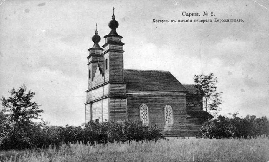 КостелРозмір зображення: 913:552 піксел Російська поштівка 1913 р. з альбому «Дубенський форт-застава» Підпис: «Костел в имении генерала Дорожинского». |