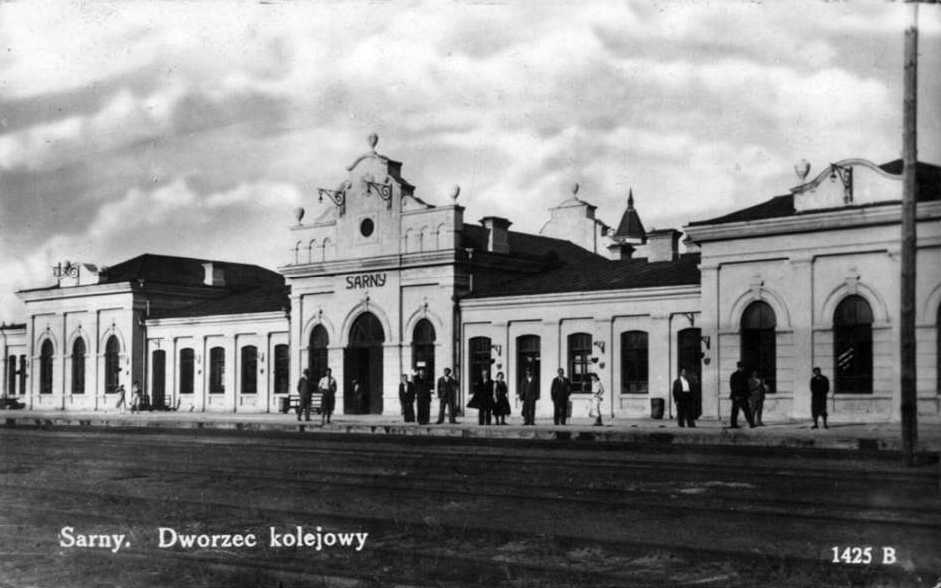 Залізничний вокзалРозмір зображення: 941:588 піксел Польська поштівка 1930-х (?) рр. з альбому «Дубенський форт-застава» Вокзал збудовано у 1885 р. на лінії Рівне – Лунинець. Довідка у Вікіпедії: |