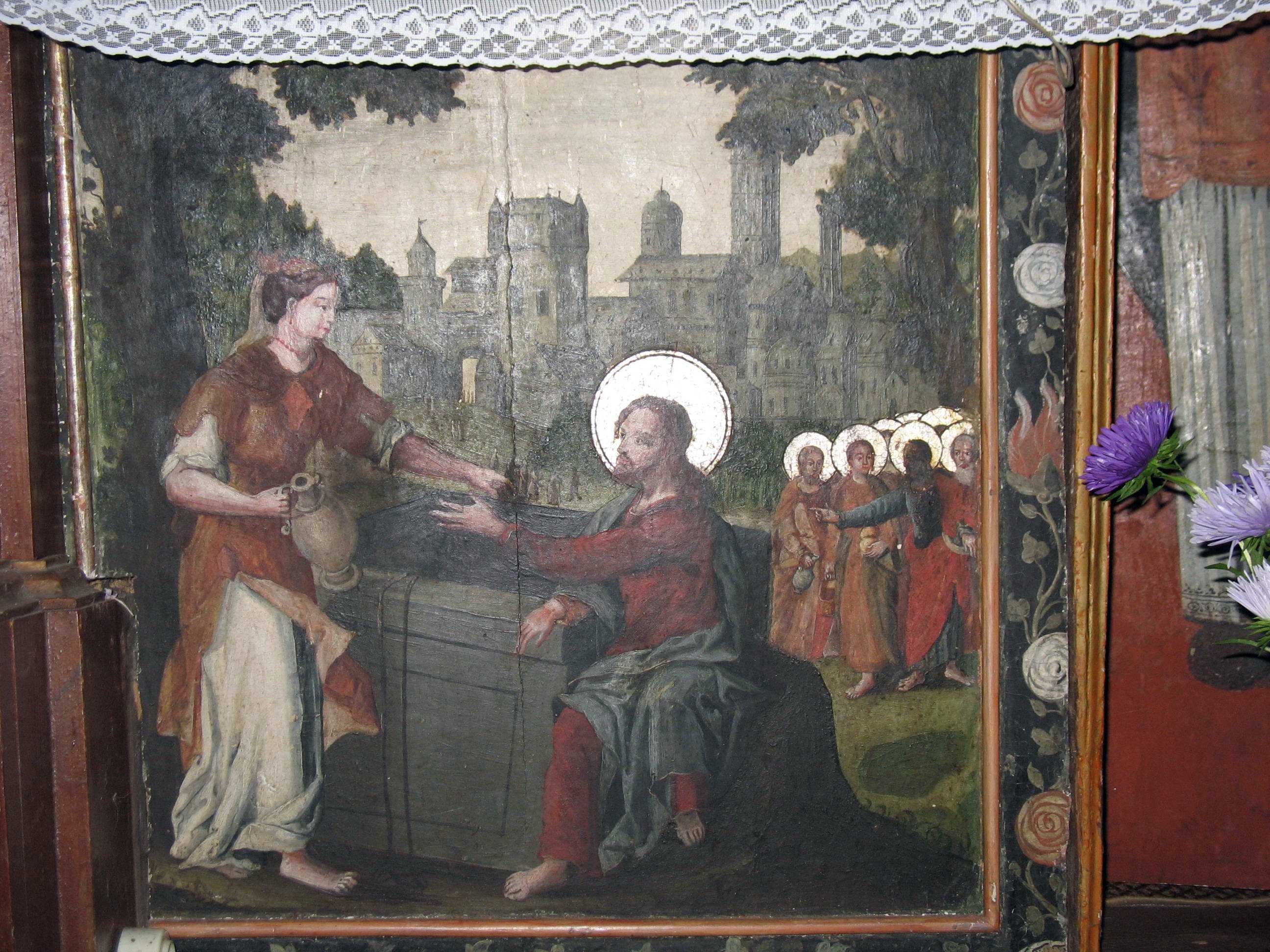 Ікона «Христос і самаритянка»Розмір зображення: 2592:1944 піксел Фото Зенона Боровця і Богдана Тхора, 5 вересня 2006 р. В ряді пределл під іконою «Христос учитель». |