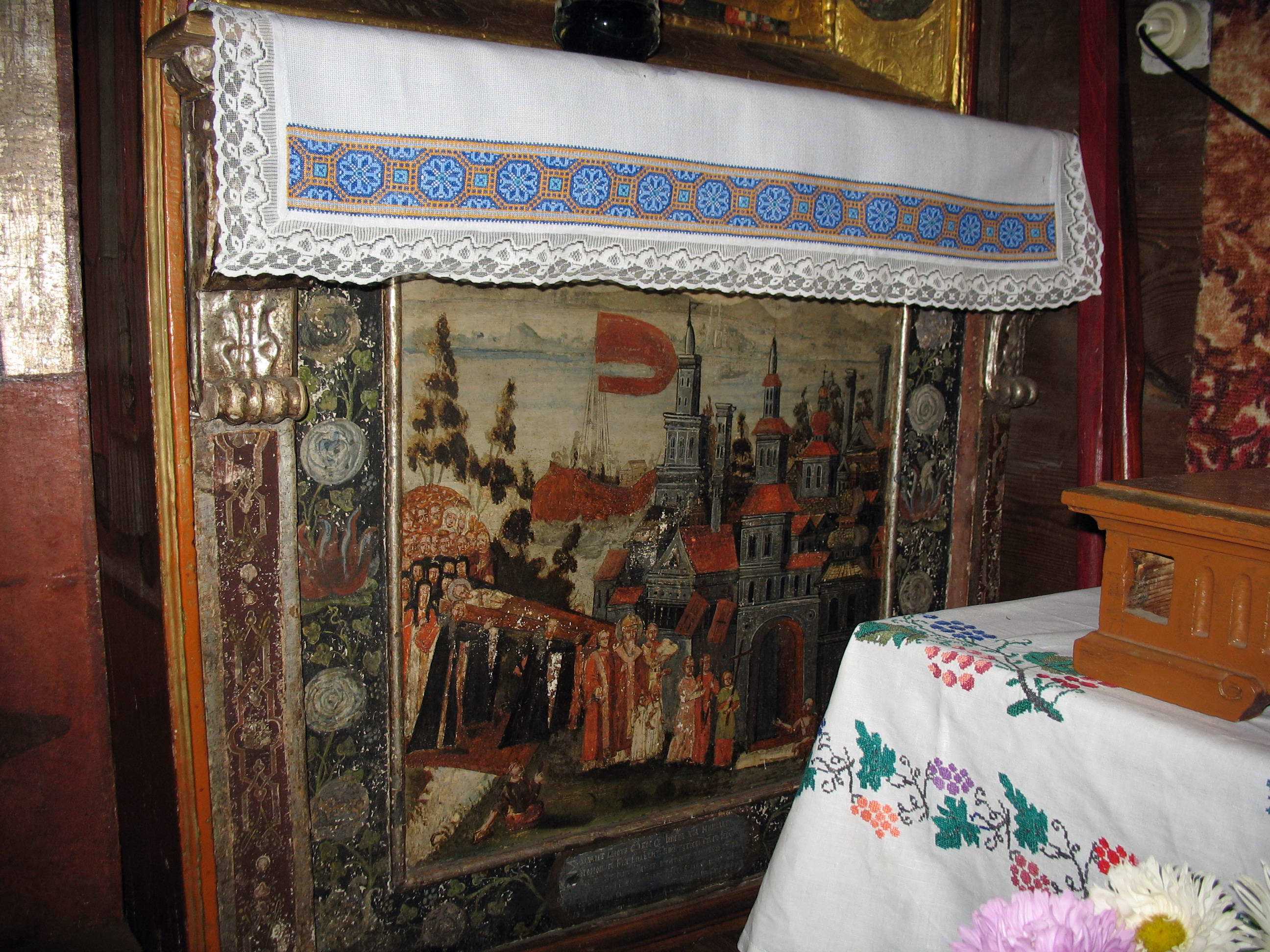 Ікона «Перенесення мощів св. Миколи»Розмір зображення: 2592:1944 піксел Фото Зенона Боровця і Богдана Тхора, 5 вересня 2006 р. В ряді пределл під іконою св. Миколи. |