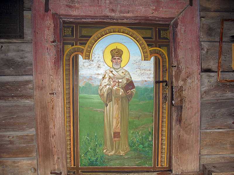 Ікона св. Миколи Розмір зображення: 800:600 піксел Фото Зенона Боровця і Богдана Тхора, 5 вересня 2006 р. Вкладені елементи 2011 р. Загальний вигляд ікони св. Миколи (+)