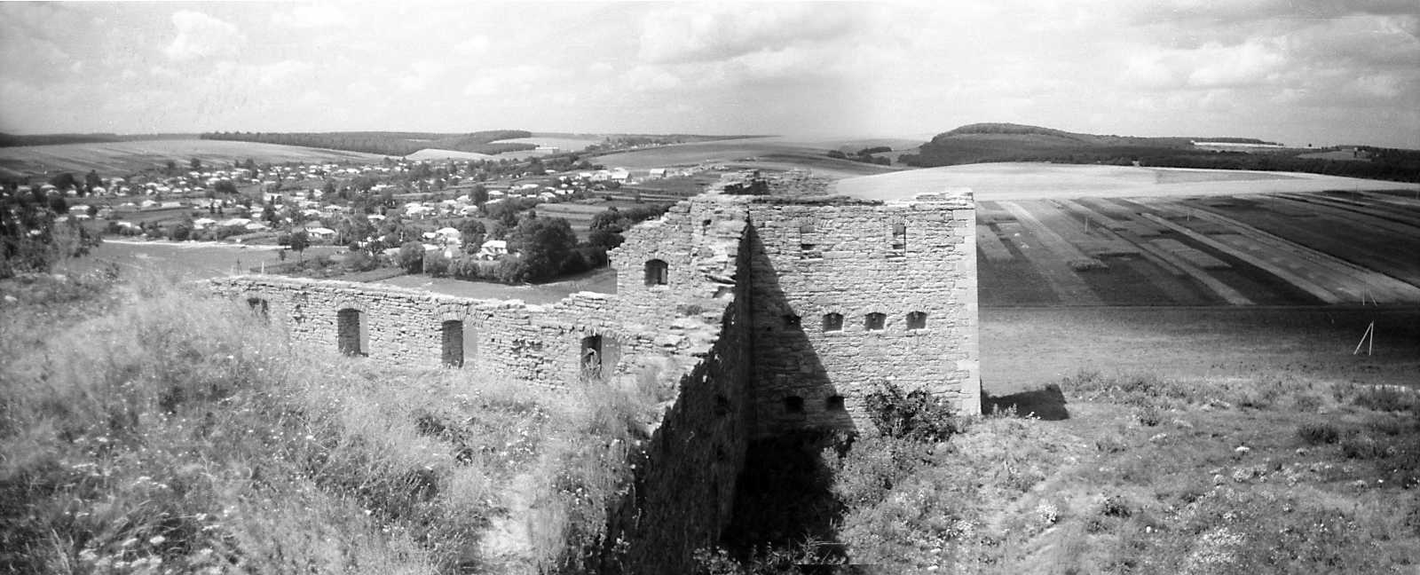 1995 р. Північна частина замку. Вигляд з південного сходуРозмір зображення: 1600:648 піксел 1995 р. 27 липня. Фото М.І.Жарких. Негатека, № 864-18+9. |
